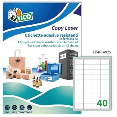 White polyester permanent self-adhesive labels Dimensions: 48 x 25 mm Number of labels per sheet: 40