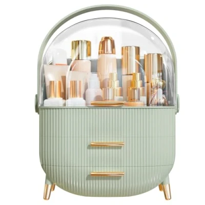 TidyTrove Makeup Organiser Multi Function Make up Organisers 3 Layer Drawers Storage Cosmetics Skincare with Clear Dustproof Waterproof Cover, For Bathroom Vanity Table Desktop, Green