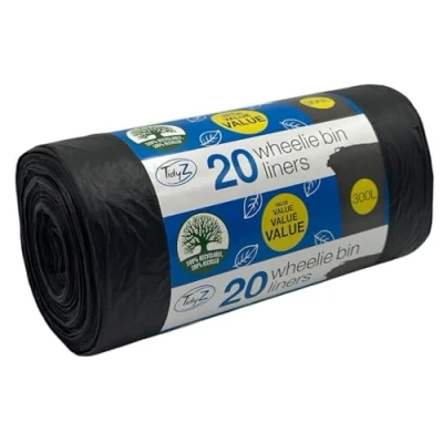 EXTRA LARGE 300L CAPACITY - Perfect for all standard UK wheelie bins including 240L 100% RECYCLED & RECYCLABLE - Eco-friendly choice SAVE MONEY by not needing to have your bins cleaned HEAVY DUTY - Perfect strength & thickness - the optimum to line your bins, keeping them free of waste materials VALUE PACK OF 20 - Long-lasting 20 WEEK supply LEAKPROOF - Designed to line your bins ready for bin collection day, leave the bag in place and the waste collection truck will simply tip the liner and its contents leaving your bin clean and mess free - simple! MULITPURPOSE - Use to Cover Garden Furniture, Transport Balloons, Store Large Garden Furniture Cushions