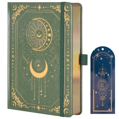 Aesthetic Journal: The cover adopts high-grade hot stamping embossing technology, with delicate texture, three-dimensional touch, and retro color background, showing low-key luxury beauty, suitable for daily use or as a beautiful gift to others. The hot stamping details on the side enhance the overall exquisiteness, echoing the hot stamping elements on the cover, highlighting the quality of the details and showing unique taste. 7mm College Rule: The interior pages are designed with 7mm college spacing and are moderately spaced to clearly align the text while leaving plenty of room for handwriting fonts, making them suitable for both English and Chinese writing, handwritten collages, or inspirational shorthand. 100gsm 316 Numbered Pages: Selected 100gsm high-density paper, thick, wear-resistant and highly resistant to penetration, no ink absorption trouble on the back, long-term preservation of clear handwriting. A total of 316 pages of paper, enough for you to use for a year. Multi-use: This journal comes with 2 bookmark ribbons, a back pocket, and a bonus beautiful sun and moon themed bookmark, making it perfect for journaling, note-taking, planning, and creative writing. Whether you are a student, professional, or artist, this journal will meet your daily needs and provide a reliable and beautiful space for all your writing work. Perfect Gift Choice: Size:8.3×5.8 in (14.7×20.7 cm). The elegant design and practical features make this journal an excellent gift for any occasion. Whether for birthdays, holidays, or special celebrations, it’s a thoughtful and stylish present that will be appreciated by anyone who loves to write.
