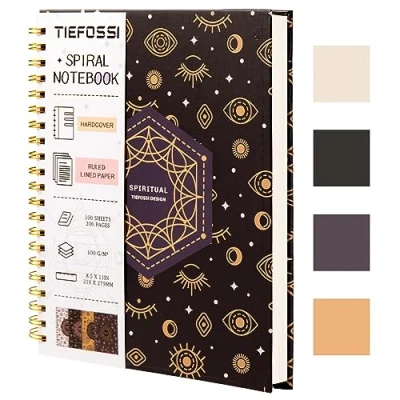 Amazon RULED/LINED JOURNAL: This designed spiral notebook will be the ultimate good partner for your study and work. The waterproof and durable hardcover is well protected from harm during the movement of the bus or travel. Hardcover’s large notebook is enough to last you a year. 100GMS THICK 200 PAGES: The paper in this notebook is 100gms, 20% thicker than regular paper, to avoid bleed-through when writing. With 200 pages of lined paper, it is the ultimate helper for your academic success! DOUBLE-WIRE BINDING DESIGN: Golden sturdy double-wire binding design is beautiful and practical, so the journal can be completely flat, bringing a more comfortable writing experience. INFERENCE: With a moon and sun galaxy of hardcover spiral journals, size about 8.5 x 11in (21.6 x 27.9 cm), college-ruled paper, with a lot of paper, enough for your frequent use in school, write down easily forgotten learning points, clear thinking logic of a good tool. MYSTERIOUS MOON AND SUN DESIGN: Cover mysterious moon and sun design, suitable for people with the spirit of exploration who love to study the universe; universe represent the mystery, and exploring in the universe also means exploring in learning and work; fearless forward, let the spiral notebook accompany you, the pursuit of the best process.