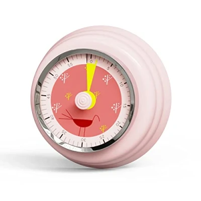 Tiergrade Kitchen Timer, Reminder Timer 360 Degree Rotating Mechanical Timer, Visual Timer Back countdown Kitchen Timer Fridge Magnetic for Cooking, Learning (Pink Bird) 【Loud Alarm】 An acoustic alarm sounds after the time has elapsed, and the ringing time is about 3-5 seconds. Sound up to about 72 db. With loud alarm reminders, you don’t need to worry about over-cooking or forgetting anything you have to do. 【360 Degree Rotation】 Turn the 360-degree rotating mechanical timer clockwise. When you turn the mainspring, a striking round of yellow film will appear, allowing you to see your scheduled time more visually. 【Easy to Use】 Reminder Timer comes completely without a battery, and is mechanically operated thanks to the clock mechanism. Timing is accomplished in just two steps: rotating clockwise to 55, and then counterclockwise back to the set time. 【Multi-Use】 Ideal for kitchen timers, sports timers, egg timers, homework timers, time cubes, debate timers, timers for debates, and also as game timers.