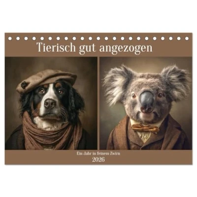 Tierisch gut angezogen (Tischkalender 2026 DIN A5 quer), CALVENDO Monatskalender: Tiere in stilvoller Kleidung