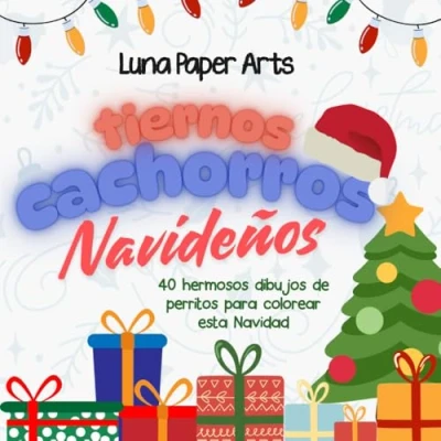 Tiernos Cachorrros Navideños: 40 dibujos de perritos en navidad para colorear