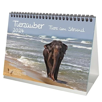 Tierzauber Beach DIN A5 Desk Calendar for 2024 Various Animals on the Seelenzauber