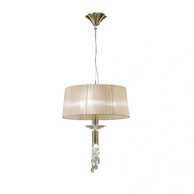 Tiffany Ceiling Pendant 3+1 Light E27+G9, Antique Brass with Soft Bronze Shade & Clear Crystal