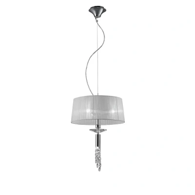 Tiffany Ceiling Pendant 3+1 Light E27+G9, Polished Chrome with White Shade & Clear Crystal