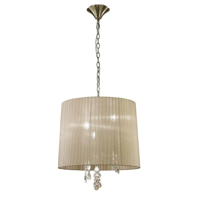 Tiffany Ceiling Pendant 3+3 Light E14+G9, Antique Brass with Soft Bronze Shade & Clear Crystal