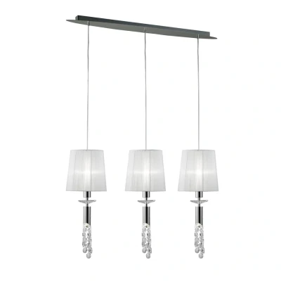 Tiffany Ceiling Pendant 3+3 Light E27+G9 Line, Polished Chrome with White Shades & Clear Crystal