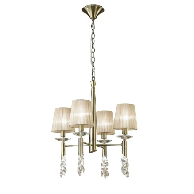Tiffany Ceiling Pendant 4+4 Light E14+G9, Antique Brass with Soft Bronze Shades & Clear Crystal