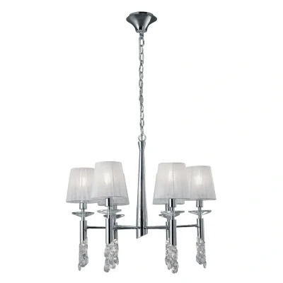 Tiffany Ceiling Pendant 6+6 Light E14+G9, Polished Chrome with White Shades & Clear Crystal