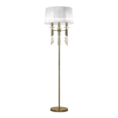 Tiffany Floor Lamp 3+3 Light E27+G9, Antique Brass With White Shade & Clear Crystal