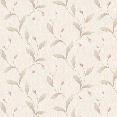 Tiffany Floral Trail Heavyweight Vinyl Wallpaper Leaves Pink/Bronze/Cream Belgravia 160