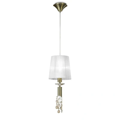 Tiffany Pendant 1+1 Light E27+G9, Antique Brass With White Shade & Clear Crystal