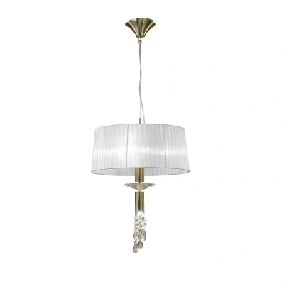 Tiffany Pendant 3+1 Light E27+G9, Antique Brass With White Shade & Clear Crystal
