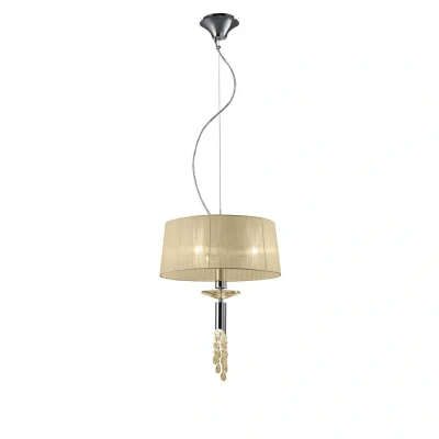 Tiffany Pendant 3+1 Light E27+G9, Polished Chrome With Cream Shade & Clear Crystal