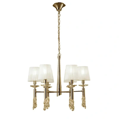 Tiffany Pendant 6+6 Light E14+G9, French Gold With White Shades & Clear Crystal