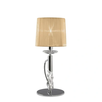 Elevate your decor with the Tiffany Table Lamp, featuring a soft bronze shade and polished chrome accent. This elegant design is complemented by clear K9 crystal, providing a stylish focal point that adds warmth and sophistication to any room.