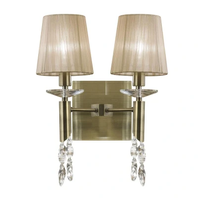 Tiffany Wall Lamp 2+2 Light E14 With Soft Bronze Shades Antique Brass/Crystal