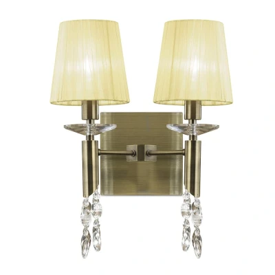 Tiffany Wall Lamp Switched 2+2 Light E14+G9, Antique Brass With Cream Shades & Clear Crystal