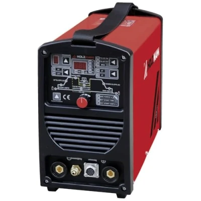 General description The HOLZMANN TISA180 TIG/MMA welding system is a versatile machine designed for both DC MMA and DC TIG welding, including pulsed DC TIG welding. It features an arc ignition selector (LIFT/HF), a 2T/4T torch mode, and a program memory function for enhanced usability. Technical specifications Welding current range (MMA): 5-160 A Welding current range (TIG): 3-180 A Gas pre-flow time: 0-10 s Gas post-flow time: 0-25 s Current fall time: 0-25 s Current rise time: 0-25 s DC pulse frequency: 0.5-500 Hz Input voltage: 230 V / 50-60 Hz Power consumption: 5.5 kVA Installation dimensions: 425 x 195 x 310 mm Packaging dimensions: 370 mm (width) x 500 mm (length) x 350 mm (height) Net weight: 9 kg Gross weight: 12 kg Compatibility and accessories TIG welding torch Electrode holder Torch cap (short/long) Gas nozzles Collet housing and collets Gas hose Earth cable Pressure regulator