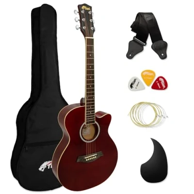 Tiger ACG1 RD34 Acoustic Guitar with Steel Strings 3/4 Size for Beginners aged 9+ Bag, Strap, Spare Strings, Scratchplate and Pick Included 6 Months Free Lessons Red