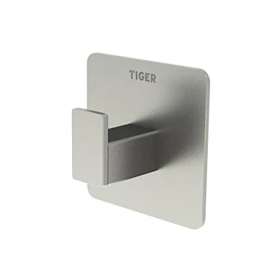 Tiger Hook Pull Square for Clothes and Towels, Adhesive Fixing, 2.2 x 4.5 cm, Brushed Stainless Steel
