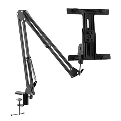 A fully adjustable height mechanism and secure grips allow this particular holder to accommodate devices with screen sizes of 7"-10.1" Almost any tablet is compatible; just twist the curved knob to release the sliding grips, place your tablet inside and tighten the knob back up Can be used in landscape and portrait mode Four strong springs to hold arm firmly in place, Double braced arm for extra stability Strong Metal Desk Clamp with a maximum opening of 4.2cm