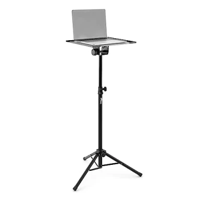 Height adjustable laptop / projector stand - minimum height 88cm, maximum 137cm 40cm x 30cm desk big enough to fit most laptops, projectors and tablets Rubberised feet on tripod base offer security and safety Lightweight, collapsible design ideal for use at performances, conferences and meetings Quick and easy deconstruction make this a favourable option for projector use at home, can be stored when not in use, unlike a bracket in the ceiling