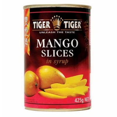 Tiger Tiger Mango Slices in Syrup 425g are sweet, juicy mango pieces preserved in syrup, ideal for desserts or toppings. Made with mango, water, and sugar—convenient for year-round enjoyment.