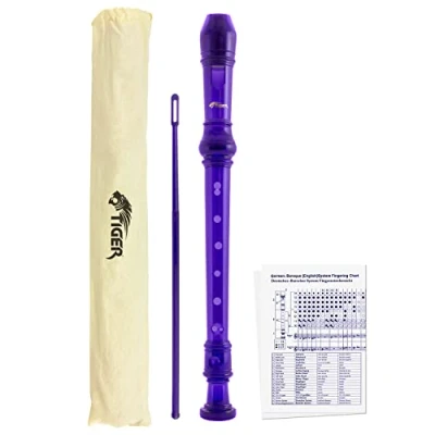 TIGER REC7 PU Descant/Soprano School Recorder with Bag, Cleaning Rod and Fingering Chart, English/Baroque Purple