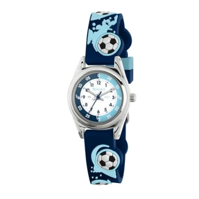 The 3D football strap watches offer an easy-to-read design perfect for young timekeepers. The 24mm watch features a specially designed time teacher dial, developed to help kids learn to tell the time with confidence The soft silicone strap is comfortable to wear and easily adjustable to fit a variety of wrist sizes.