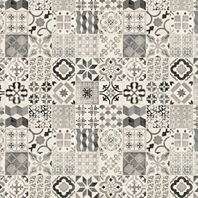 Tile Effect Vinyl Flooring 2.4mm Thick Lino for Bathroom Kitchen Hall (Black & White Patterned Tiles, 2m x 2m)