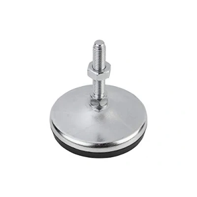 Box contents: 2 pieces (including matching nut) Adjustable foot diameter D=80, thread: M12X100. Weight: 655, 88 g each Material: base plate and threaded spindle galvanised steel. Base with rubber pad (vulcanised). Shape: A: round Adjustable feet with rotatable threaded spindle and rubber standing surface compensate for uneven floors. The solid rubber pad is firmly connected to the sheet metal plate by vulcanising. The rubber pad has excellent traction. It absorbs the body and makes it difficult to transfer vibrations and bumps to the ground. For stainless steel feet, the spanner width is designed as a two-sided blade from the spindle size M16. Supplied with matching nut. Areas of application: mechanical engineering, apparatus construction, logistics and assembly, Manufacturer: KIPP