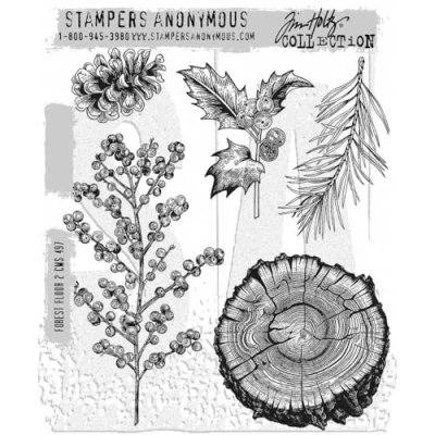 Tim Holtz Cling Stamps Forest Floor 2 - CMS497 - Cling Mounted Rubber Stamp Set by Tim Holtz for Stampers Anonymous Charming festive set of 5 stamps including a pine cone, log slice, holly leaves, pine sprigs, and berry branches Stamps range in size from 1.3" x 1.9" to 3.1" x 5.5" Great for card making, scrapbooking, and other Holiday-themed projects