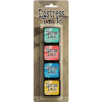 Tim Holtz Distress - Mini Ink Pad Kits Distress Mini Ink Pad Kit 13 - Sold in a strip of 4 pads. Distress Mini Ink Kit 13 (Includes Cracked Pistachio, Abandoned Coral, Mermaid Lagoon & Fossilized Amber). 52 Distress palette colors available 1 x 1 stackable pad Raised felt surface Available in 13 kits featuring 4 pads each Coordinates with the Distress palette of products. TDPK46738 TDPK46738 TDPK46738 MPN TDPK46738