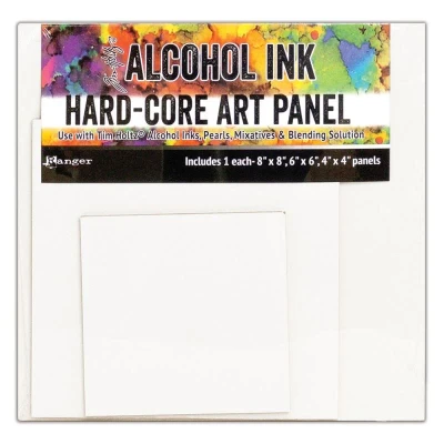 Hard Core Art Panels Square - 3 Pack - 1 each of 4" x 4", 6" x 6" and 8" x 8" Tim Holtz Alcohol Inks - Surfaces Tim Holtz Alcohol Ink Hard-Core Art Panel is a versatile substrate for fine art and mixed media techniques using Tim Holtz Alcohol Inks, Pearls, Mixatives, and Blending Solution. Hard-Core Art Panels are double-sided vinyl with an Engineered-Wood-Rigid-Core MDF board offering an ideal surface that remains rigid and flat. Vinyl is mounted with a pH non-yellowing permanent adhesive which creates a ready to use bright white, lightly textured surface. Available in 3-pack of 4"ÔøΩ x 4"ÔøΩ, 3-pack of 5"ÔøΩ x 7"ÔøΩ, assorted square pack (one each of 8"ÔøΩ x 8"ÔøΩ, 6"ÔøΩ x 6"ÔøΩ, and 4"ÔøΩ x 4"ÔøΩ), and assorted rectangle pack (one each of 8"ÔøΩ x 10"ÔøΩ, 5"ÔøΩ x 7"ÔøΩ, and 4"ÔøΩ x 6"ÔøΩ). TH2101 TAC66927 TAC66927 TAC66927 MPN TAC66927