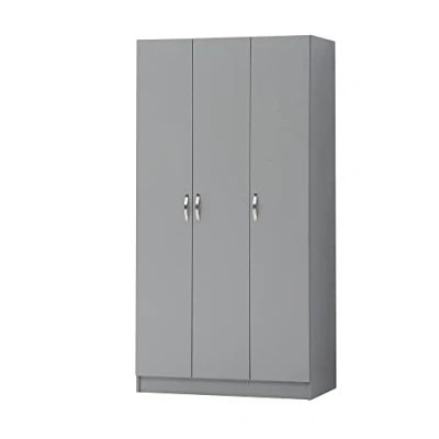 Timber Art Design 3 Door Double Wardrobe Modern Almirah Storage Cupboards Organiser Unit With Shelving, Hanging Space, Bedroom Furniture Chrome Metal Handles, Grey H180 x W90 D45 cm