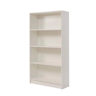 Timber Art Design Bookcase 4 Tier Storage Open Floor Mount Industrial Rack Display Shelving Organiser Cubes Unit For Living Room, Office, Study Room Furniture White 40 x 106 30 cm