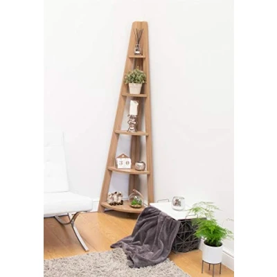 Timber Art Design Riva Scandinavian Retro 5 tier Corner Ladder Wooden Bookcase Shelving Unit for Storage Modern Furniture Bedroom, Living Room, Oak W34.2 x H175.4 D34.2 cm