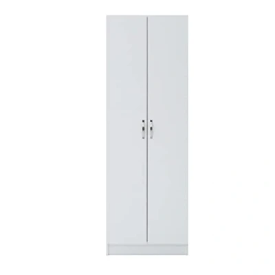 AmazonDURABLE MATERIAL - Our wardrobe is made of engineered particle board wood for sturdy construction. Smooth surface is easy to maintain and keep clean. The metal handles give the wardrobe modern touch, keeping it nice and simple. MEASURES - H180cm x W60cm x D45cm. The spacious inside area of the wardrobe allows you to store a large variety of clothes and other items as well as makes them all easy to access. AMPLE SPACE - Having an additional shelf provided on bottom of the clothes rail could be perfect for you to store your smaller belongings such as books, magazines, jewellery, shoes and much more. MODERN DESIGN - This beautifully crafted two door wardrobe is sure to make a big impression on your bedroom. Not only does it offer plenty of storage, it features an internal shelf with hanging rail and metal handles. SPACE SAVING - The spacious inside area of the wardrobe allows you to store a large variety of clothes and other items as well as makes them all easy to access.