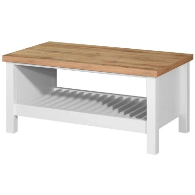 Elevate your living space with the Astbury Coffee Table, where classic British design meets practical functionality. This bright and elegant piece features a striking white frame contrasted beautifully by a warm oak top, offering a timeless look that complements any décor. Key Features Elegant British-inspired design with a bright, fresh aesthetic Contrasting white frame and oak top for a stylish, modern look Ample open storage space to keep your living area organised Solid wood appearance with the ease of self-assembly Lightweight design for easy repositioning Finish & Materials The coffee table features a pristine white frame paired with a natural oak top finish, combining to create a charming and versatile piece. Crafted to emulate solid wood, it brings warmth and character to your home. Dimensions Width 90 cm Height 43 cm Depth 50 cm