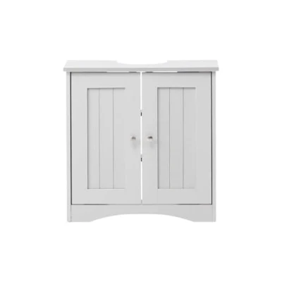 Pre-cut Pedestal Sink Hole - This under sink cabinet comes with a hole on the top, which can perfectly match your sink pedestal or water pipe of most sizes. Measures - H 60cm x W 60cm x D 30cm. Comes with 2 Internal shelves for ample storage of your daily essentials. Space Saving - Let our under sink organizer help you fully utilize the spacious vacant place under the sink. The shelves can hold different items like cosmetics, toiletries, towels, toilet paper, etc. A great option for tucking away bathroom clutter. All-match Design - This bathroom storage cabinet showcases a sleek rectangular design with beadboard panels on the door face and glossy metal handles, making it an aesthetically-pleasing fit for any bathroom décor from traditional to modern. Made of Particle Board, each item comes flat packed for self-assembly at home. Please note that due to lighting and different devices you might be using, the colour in the image may vary slightly for the actual colour of the product.