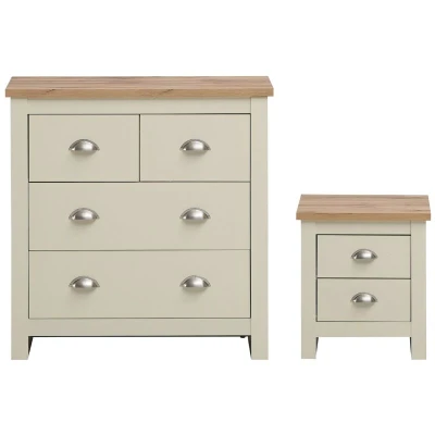 Transform your bedroom into a peaceful sanctuary with this elegant 2-piece bedroom set, finished in a warm cream oak. Combining timeless style with practical storage solutions, this set creates a cosy retreat where organisation meets sophistication. Key Features Elegant Cream Oak Finish: Soft cream tones with subtle oak accents add warmth and charm to any bedroom décor. Ample Storage Space: The 2+2 drawer chest offers generous room for clothes and accessories, complemented by a handy bedside table for essentials. Durable Construction: Crafted from quality materials to ensure long-lasting use and everyday practicality. Compact and Versatile Design: Ideal for various room sizes, providing storage without overwhelming your space. Coordinated Look: Matching pieces deliver a harmonious and contemporary bedroom aesthetic. Finish & Materials This bedroom set features a cream finish enriched with oak detailing, creating a cosy and inviting atmosphere. Made from carefully selected materials,