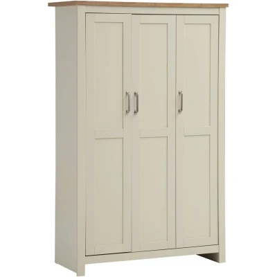 Transform your bedroom into a serene retreat with the elegant Lisbon 3 Door Wardrobe. Its warm Cream frame paired with a contrasting Oak effect top brings a cosy and inviting atmosphere to any space, perfectly blending style with practicality. Key Features Spacious Storage: Designed with three doors, it offers a hanging rail and three internal shelves to neatly organise your clothing and accessories. Elegant Design: Cream frames complemented by a cascading Oak effect top create a timeless and sophisticated look. Quality Hardware: Features elegant steel handles and smooth metal drawer runners for durability and ease of use. Functional Layout: Ample shelving and hanging space ensure your wardrobe essentials are easily accessible and well organised. Robust Construction: Crafted from durable materials to provide lasting support and reliability in your bedroom. Finish & Materials This wardrobe boasts a soft Cream finish that imparts a light, airy feel, while the Oak effect top adds warmth