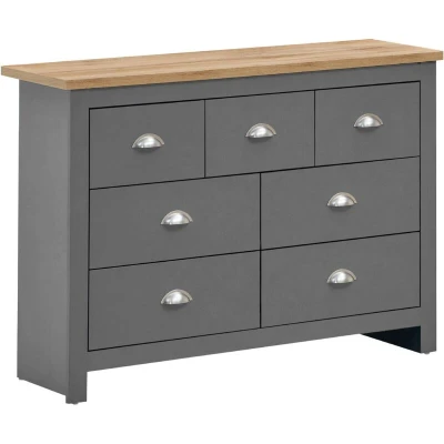 Discover a stylish and practical storage solution with this large 7 drawer chest, available in Cream or Light Grey finishes to suit any bedroom decor. Seven spacious drawers for ample storage and easy organisation Elegant steel handles for a modern touch and smooth use Durable particle board construction with metal drawer runners Contrasting oak-effect top adds warmth and style Neutral colours complement a variety of bedroom styles Flat packed for simple self-assembly at home Available Dimensions: Width 112 cm × Height 82 cm × Depth 35 cm