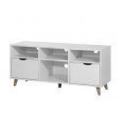 Timber Art Design UK Pulford TV Media Cabinet Unit with 2 Drawers and Open Shelves for Devices Storage Modern Furniture Living Room, Office, Hallway in White, W117cm x H53cm D39cm