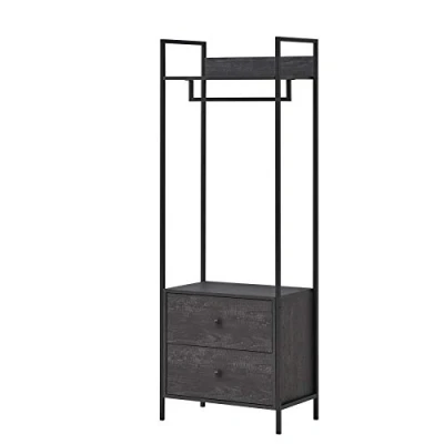 Timber Art Design UK Zahra Bedroom Open Wardrobe with Hanging Rail and 2 Drawers Modern Furniture Cupboard Storage Organizer Unit For Bedroom, Living Room, Black, H180cm x W63.8cm D40cm