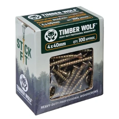 Timber Wolf TW40040 Woodscrews 4.0 x 40mm Box of 100, Zinc & Yellow (Gold)
