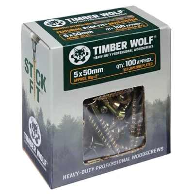 Timber Wolf TW50050 Woodscrews 5.0 x 50mm Box of 100, Zinc & Yellow (Gold)